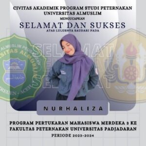 Bireuen – Civitas Akademika Program Studi Peternakan Fakultas Pertanian Universitas Almuslim mengucapkan selamat dan sukses kepada Nurhaliza, mahasiswi Peternakan yang telah menyelesaikan Program Pertukaran Mahasiswa Merdeka (PMM) Batch 3 di Fakultas Peternakan Universitas Padjadjaran (Unpad) pada periode 2023–2024. Program Pertukaran Read more